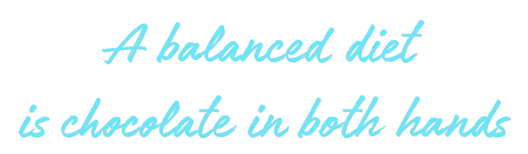 Text: A balanced diet is chocolate in both hands Text Align: CenterFont: WorldColor: Ice BlueSize: 140cm wide / 140cm X 35.34cm / 55.12in X 13.92inMaterial: IndoorBackboard: Cut to ShapeBackboard Color: Clear Acrylic BackboardJacket: Coloured JacketMounting: Wall mounting screwsAdd a Hea...