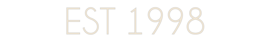 Text: EST 1998 Text Align: LeftFont: GalaxyColor: Warm WhiteSize: 60cm wide / 60cm X 13.07cm / 23.62in X 5.15inBackboard: Cut to ShapeBackboard Color: Clear Acrylic BackboardJacket: Coloured JacketMounting: Wall mounting screwsAdd a Heart or Star (Optional): None (Default)Neon Tube T...