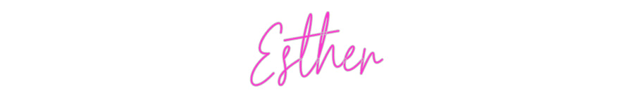 Text: Esther Text Align: leftFont: HestericaColour: PinkSize: 60cm wide / 60cm X 34.54cm / 23.62in X 13.6inBackboard: Cut to Letter (free upgrade)Jacket: Coloured JacketMounting: Wall mounting screwsAdd a Heart or Star (Optional): None (Default)Neon Tube Thickness: Classic Tube (6mm)...
