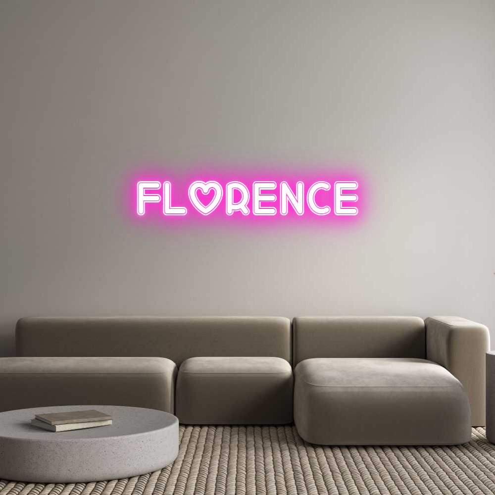 Text: Florence Text Align: LeftFont: RocketColor: PinkSize: 80cm wide / 80cm X 21.66cm / 31.5in X 8.53inMaterial: IndoorBackboard: Cut to Letter (free upgrade)Jacket: White JacketMounting: Fast mount kitAdd a Heart or Star (Optional): HeartNeon Tube Thickness: Classic Tube (6mm)Remot...