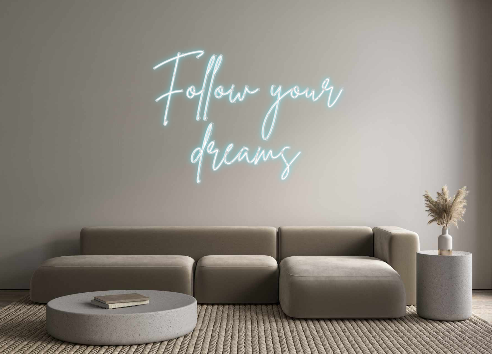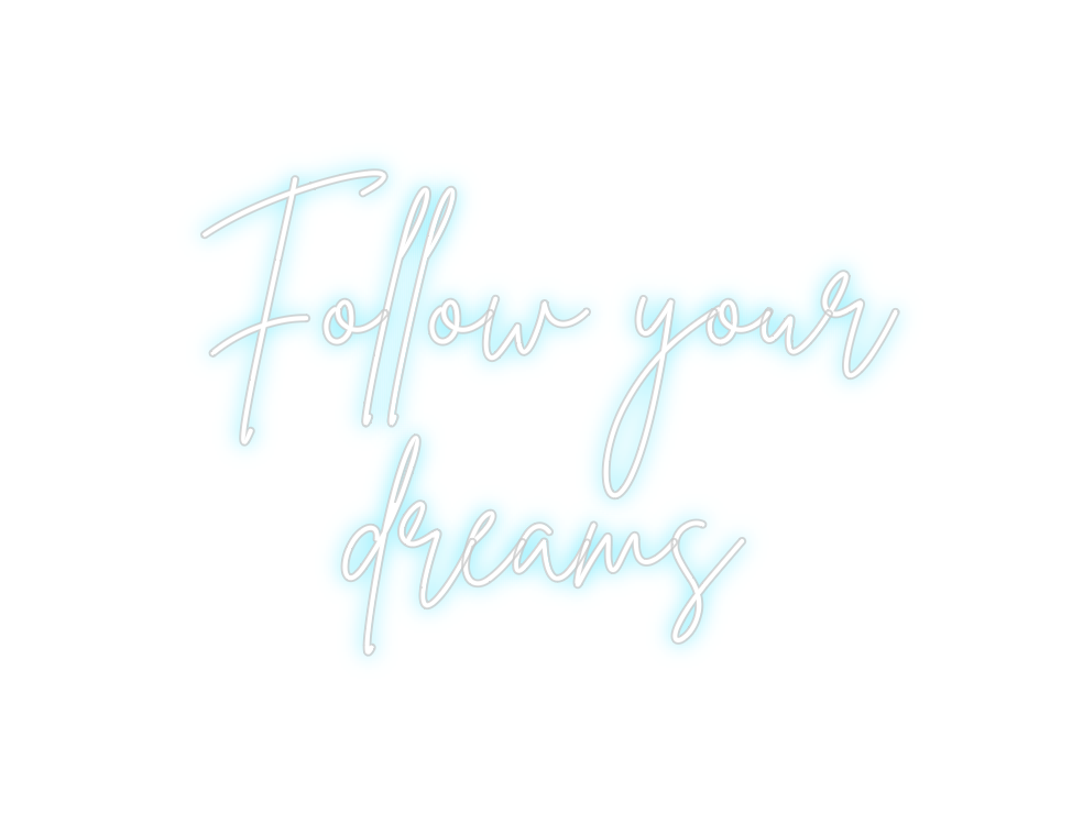 Text: Follow Your Dreams Text Align: center Font: BayshoreColour: Ice BlueSize: 120cm wide / 120cm X 22.36cm / 47.24in X 8.8inBackboard: Cut to Letter (free upgrade)Jacket: Coloured JacketMounting: Wall mounting screwsAdd a Heart or Star (Optional): None (Default)Neon Tube Thi...