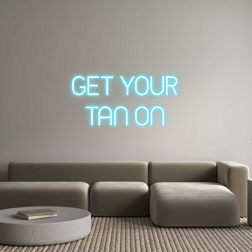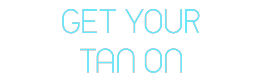 Text: GET YOUR TAN ON Text Align: CenterFont: TimeColor: Ice BlueSize: 120cm wide / 120cm X 59.18cm / 47.24in X 23.3inMaterial: IndoorBackboard: Cut to ShapeBackboard Color: BlackJacket: Coloured JacketMounting: Wall mounting screwsAdd a Heart or Star (Optional): None (Default)Neon ...
