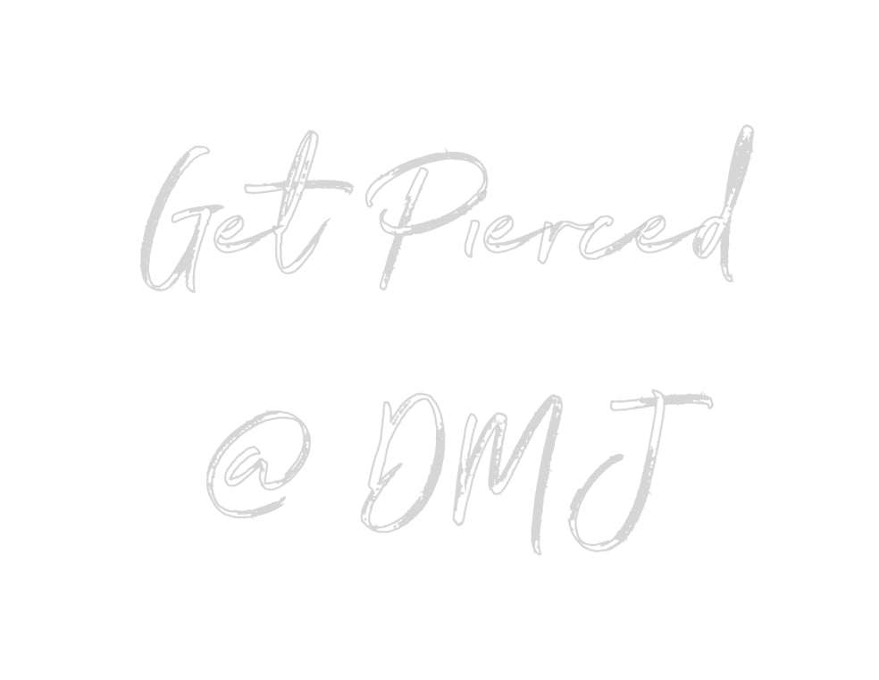 Text: Get Pierced @ DMJ Text Align: center Font: NorthwellColour: WhiteSize: 80cm wide / 80cm X 57cm / 31.5in X 22.44inBackboard: Cut to ShapeBackboard Colour: Clear Acrylic BackboardJacket: White JacketMounting: Wall mounting screwsAdd a Heart or Star (Optional): None (Defaul...