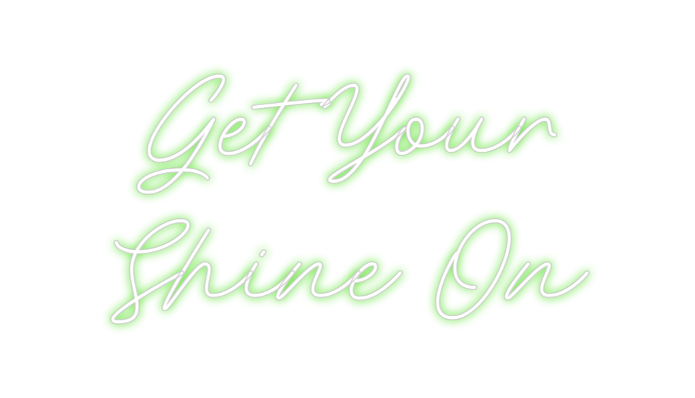 Text: Get Your Shine On Text Align: center Font: Rocket Colour: GreenSize: 100cm wide / 100cm X 51.25cm / 39.37in X 20.18inBackboard: Cut to ShapeBackboard Colour: Clear Acrylic BackboardJacket: White JacketMounting: HangingNeon Tube Thickness: Bold Tube (8mm) (free upgra...