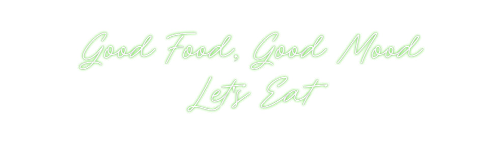Text: Good Food, Good Mood Let's Eat Text Align: center Font: RocketColour: GreenSize: 120cm wide / 120cm X 27.25cm / 47.24in X 10.73inBackboard: Cut to Letter (free upgrade)Jacket: Coloured JacketMounting: Wall mounting screwsAdd a Heart or Star (Optional): None (Default)Neon...