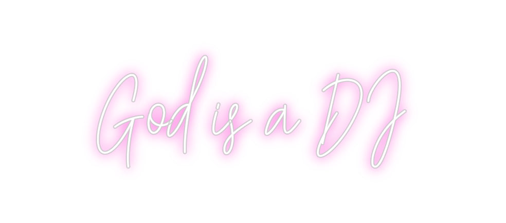 Text: God is a DJ Text Align: left Font: HestericaColour: PinkSize: 100cm wide / 100cm X 38.11cm / 39.37in X 15inBackboard: Cut to Letter (free upgrade)Jacket: Coloured JacketMounting: Wall mounting screwsAdd a Heart or Star (Optional): None (Default)Neon Tube Thickness: Bold T...