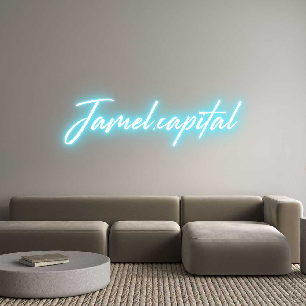 Text: Jamel.capital Text Align: centerFont: StrudeColour: Ice BlueSize: 100cm wide / 100cm X 27.23cm / 39.37in X 10.72inBackboard: Cut to Letter (free upgrade)Jacket: Coloured JacketMounting: Wall mounting screwsAdd a Heart or Star (Optional): None (Default)Neon Tube Thickness: Bold ...