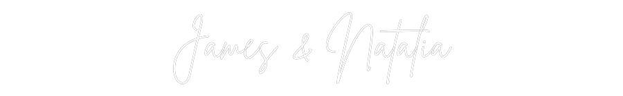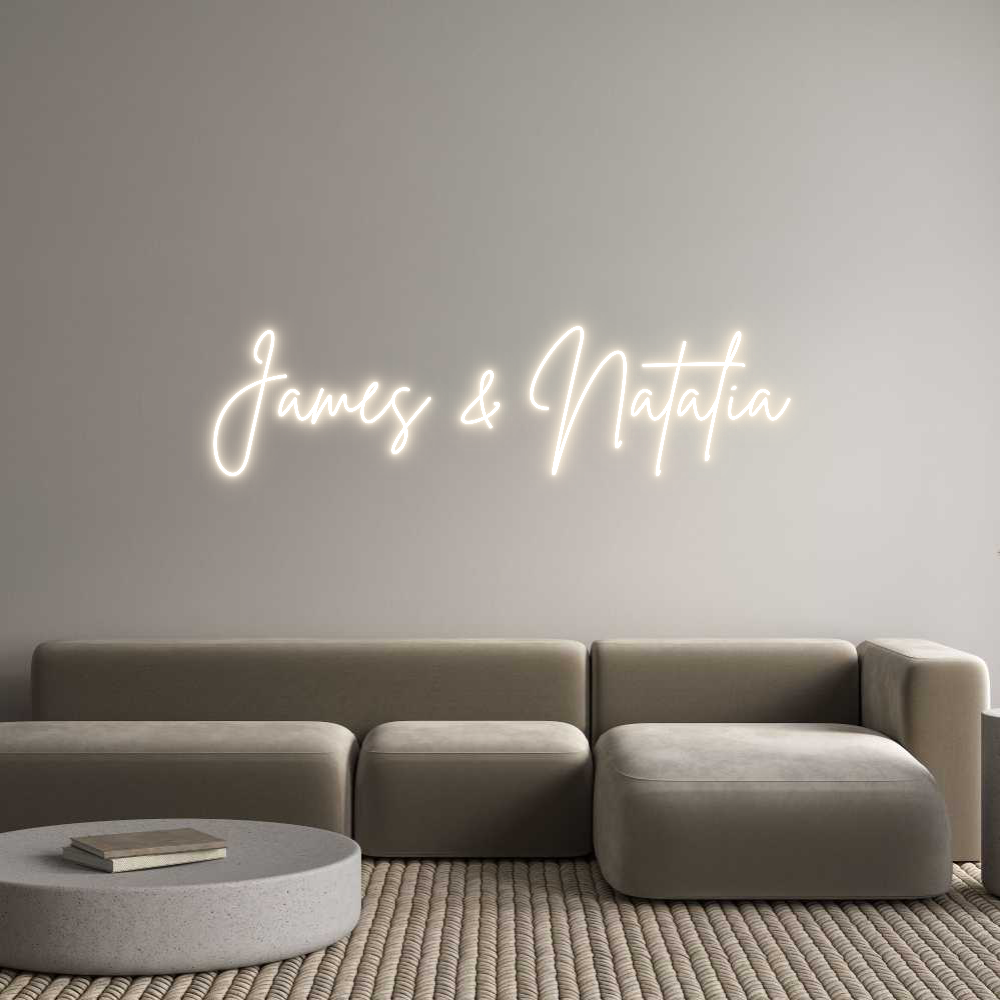 Text: James & Natalia Text Align: centerFont: BrittanyColour: Warm WhiteSize: 80cm wide / 80cm X 21.55cm / 31.5in X 8.48inBackboard: Cut to ShapeBackboard Colour: Clear Acrylic BackboardJacket: White JacketMounting: HangingAdd a Heart or Star (Optional): None (Default)Neon Tube T...