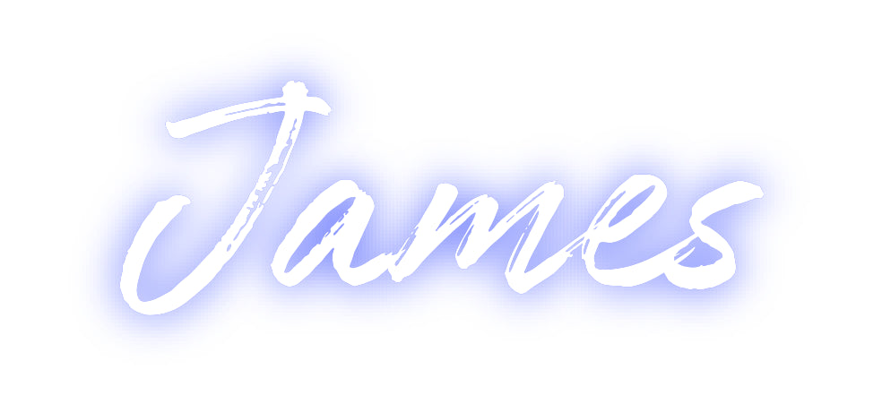 Text: James Text Align: left Font: WorldColour: BlueSize: 60cm wide / 60cm X 23.23cm / 23.62in X 9.15inBackboard: Cut to ShapeBackboard Colour: Clear Acrylic BackboardJacket: Coloured JacketMounting: Wall mounting screwsAdd a Heart or Star (Optional): None (Default)Neon Tube Th...
