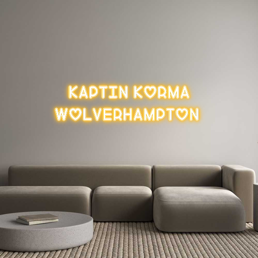 Text: Kaptin Korma Wolverhampton Text Align: CenterFont: LoveColor: Light OrangeSize: 80cm wide / 80cm X 17.4cm / 31.5in X 6.85inBackboard: Cut to ShapeBackboard Color: BlackJacket: Coloured JacketMounting: Wall mounting screwsAdd a Heart or Star (Optional): HeartNeon Tube Thicknes...