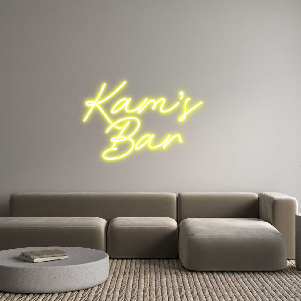 Text: Kam’s Bar Text Align: CenterFont: RocketColor: YellowSize: 60cm wide / 60cm X 45.88cm / 23.62in X 18.06inBackboard: Cut to Letter (free upgrade)Jacket: White JacketMounting: Wall mounting screwsAdd a Heart or Star (Optional): None (Default)Neon Tube Thickness: Bold Tube (8mm...