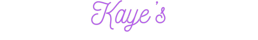 Text: Kaye’s Text Align: leftFont: NickainleyColour: PurpleSize: 60cm wide / 60cm X 25.43cm / 23.62in X 10.01inBackboard: Cut to Letter (free upgrade)Jacket: Coloured JacketMounting: Wall mounting screwsAdd a Heart or Star (Optional): None (Default)Neon Tube Thickness: Bold Tube (8mm...