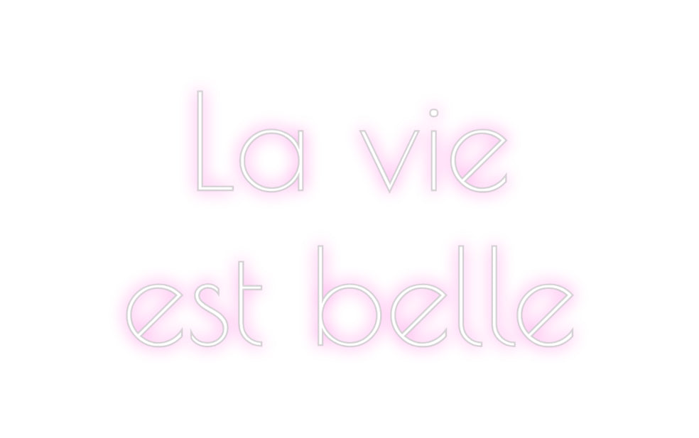 Text: La vie est belle Text Align: center Font: PoiretColour: Baby PinkSize: 60cm wide / 60cm X 33.98cm / 23.62in X 13.38inBackboard: Cut to Letter (free upgrade)Jacket: White JacketMounting: Wall mounting screwsAdd a Heart or Star (Optional): None (Default)Neon Tube Thicknes...