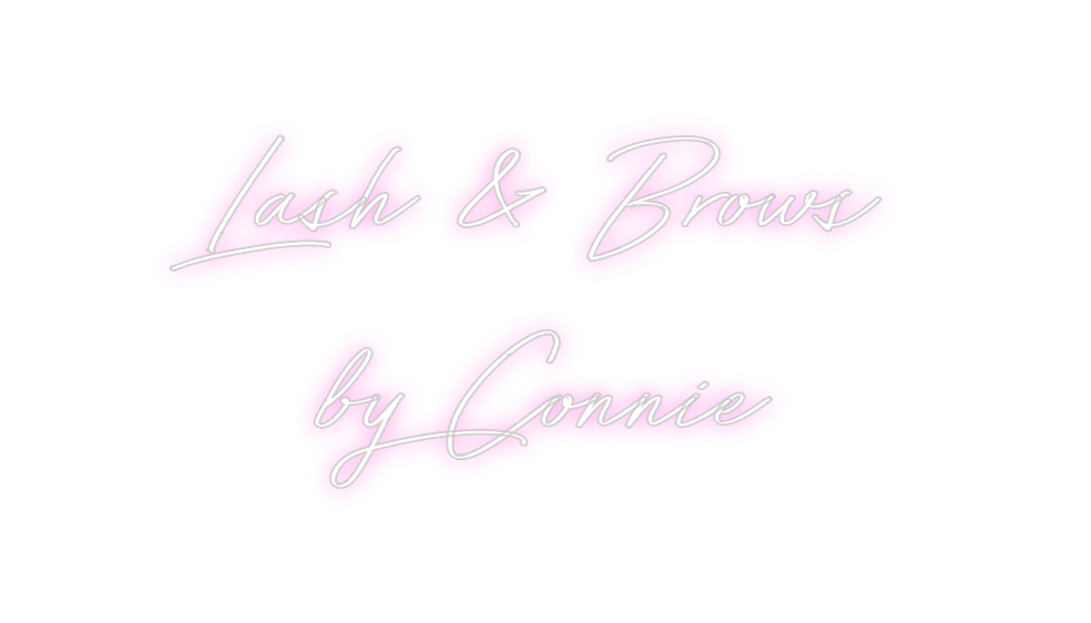 Text: Lash & Brows by Connie Text Align: center Font: BayshoreColour: Baby PinkSize: 120cm wide / 120cm X 61.22cm / 47.24in X 24.1inBackboard: Cut to Letter (free upgrade)Jacket: Coloured JacketMounting: Wall mounting screwsAdd a Heart or Star (Optional): None (Default)Neon...