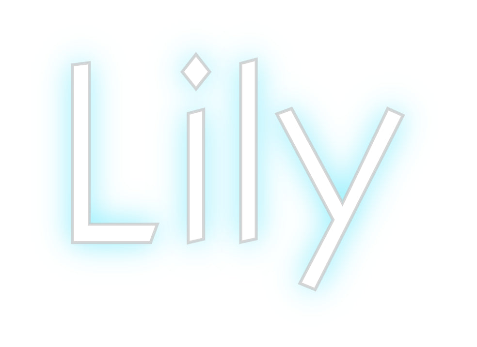Text: Lily Text Align: left Font: Northwell Colour: Ice BlueSize: 40cm wide / 40cm X 54cm / 15.75in X 21.26inBackboard: Cut to Letter (free upgrade)Jacket: Coloured JacketMounting: HangingNeon Tube Thickness: Bold Tube (8mm) (free upgrade)Remote Dimmer: YesPower Mode: Po...