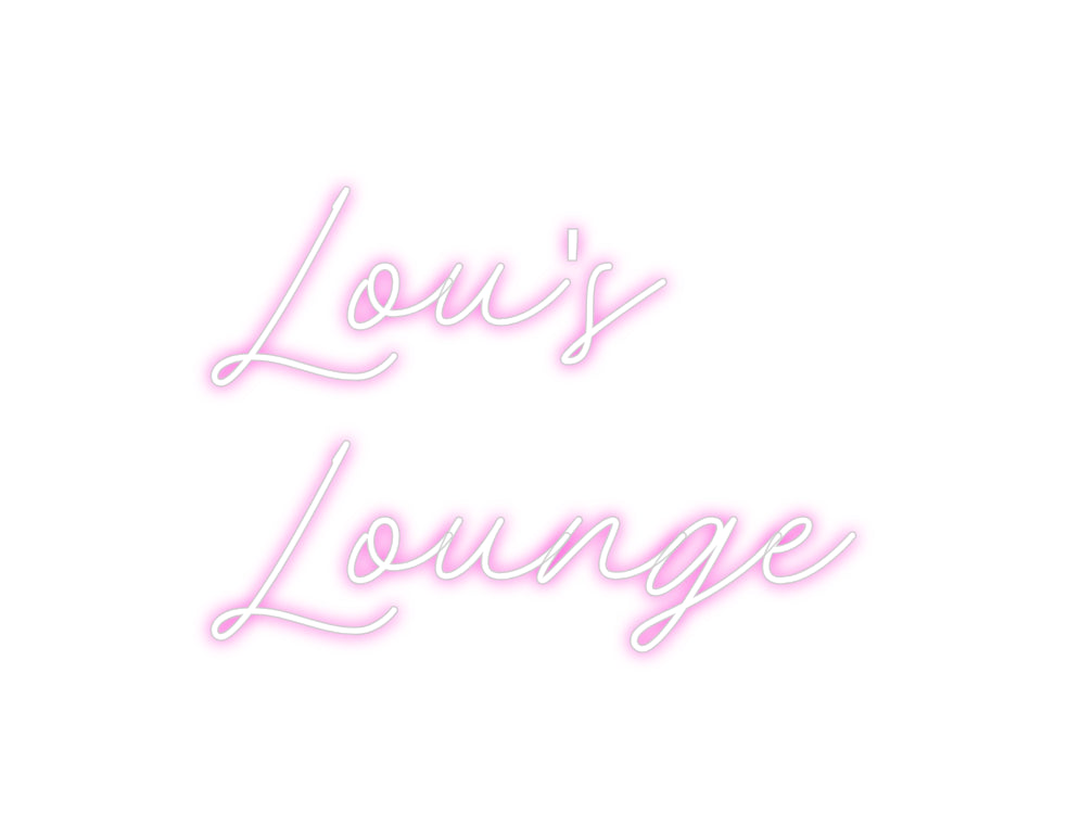 Text: Lou's Lounge Text Align: left Font: RocketColour: PinkSize: 40cm wide / 40cm X 28.98cm / 15.75in X 11.41inBackboard: Cut to Letter (free upgrade)Jacket: Coloured JacketMounting: HangingAdd a Heart or Star (Optional): None (Default)Neon Tube Thickness: Bold Tube (8mm) (fr...