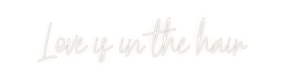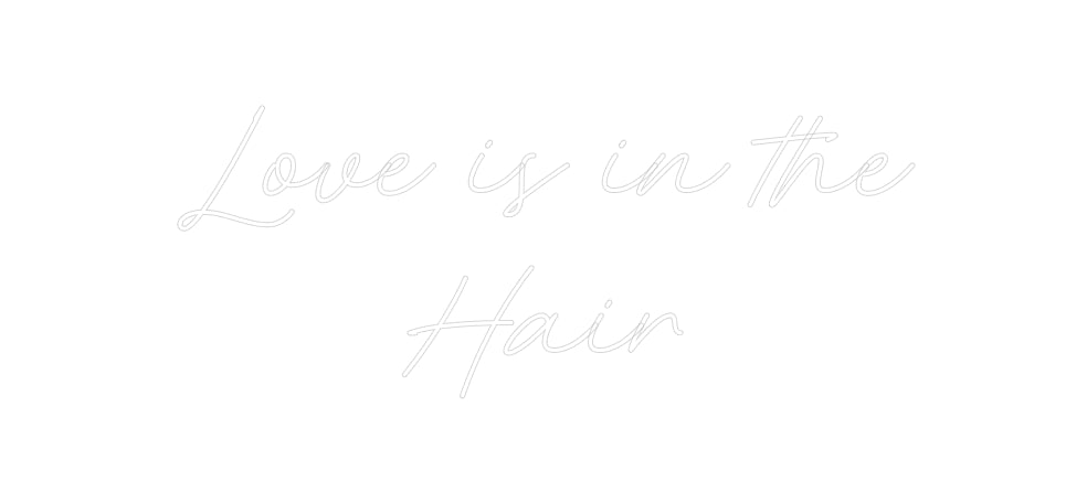Text: Love is in the hair Text Align: left Font: HestericaColour: Warm WhiteSize: 100cm wide / 100cm X 22.01cm / 39.37in X 8.66inBackboard: Cut to Letter (free upgrade)Jacket: Coloured JacketMounting: Wall mounting screwsAdd a Heart or Star (Optional): None (Default)Neon Tube T...