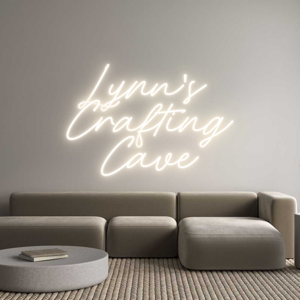 Text: Lynn's Crafting Cave Text Align: centerFont: RocketColour: Warm WhiteSize: 60cm wide / 60cm X 55.4cm / 23.62in X 21.81inBackboard: Cut to ShapeBackboard Colour: Clear Acrylic BackboardJacket: Coloured JacketMounting: Wall mounting screwsAdd a Heart or Star (Optional): HeartN...