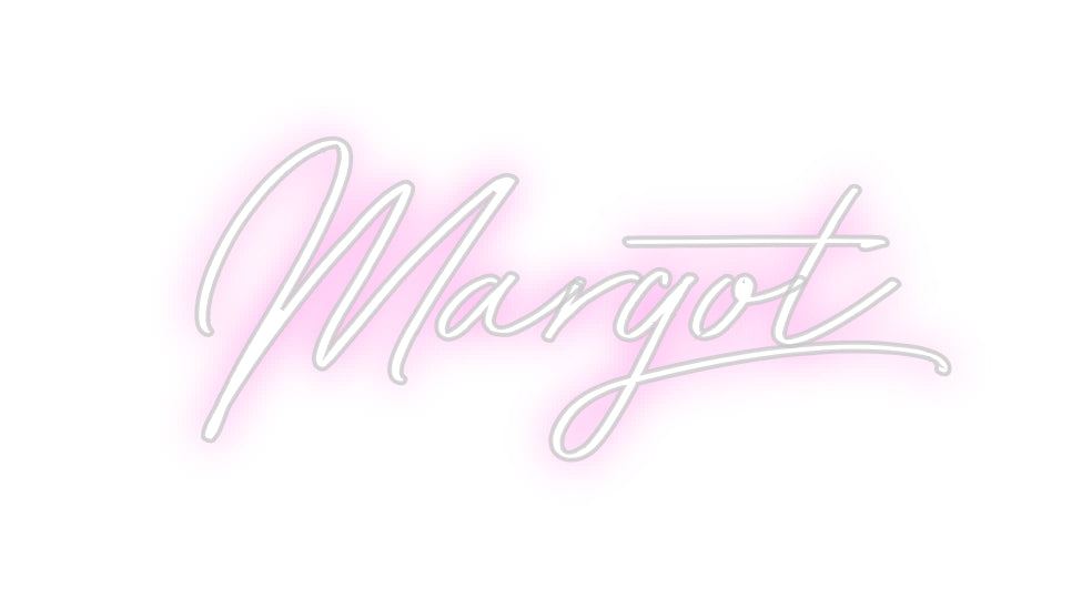 Text: Margot Text Align: left Font: BayshoreColour: Baby PinkSize: 40cm wide / 40cm X 19.49cm / 15.75in X 7.67inBackboard: Cut to Letter (free upgrade)Jacket: Coloured JacketMounting: Wall mounting screwsAdd a Heart or Star (Optional): None (Default)Neon Tube Thickness: Bold Tu...