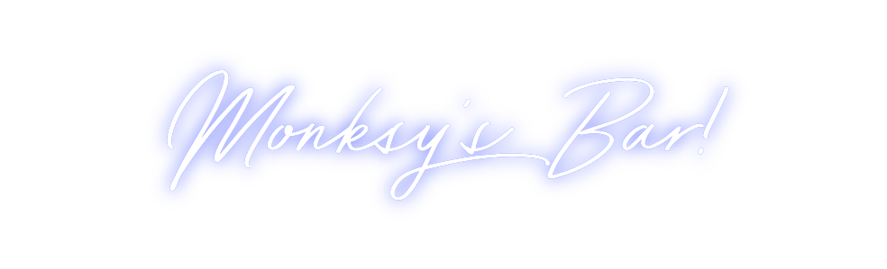 Text: Monksy’s Bar! Text Align: center Font: BayshoreColour: BlueSize: 120cm wide / 120cm X 29.25cm / 47.24in X 11.51inBackboard: Cut to Letter (free upgrade)Jacket: White JacketMounting: Wall mounting screwsAdd a Heart or Star (Optional): None (Default)Neon Tube Thickness: Bol...