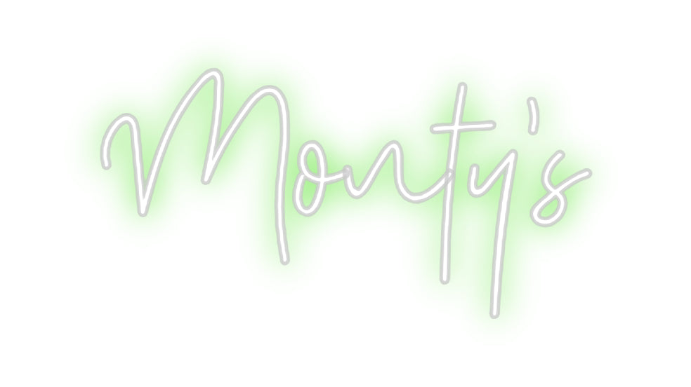 Text: Monty's Text Align: left Font: ShutterColour: GreenSize: 40cm wide / 40cm X 20cm / 15.75in X 7.87inBackboard: Cut to ShapeBackboard Colour: Clear Acrylic BackboardJacket: Coloured JacketMounting: Wall mounting screwsAdd a Heart or Star (Optional): None (Default)Neon Tube ...