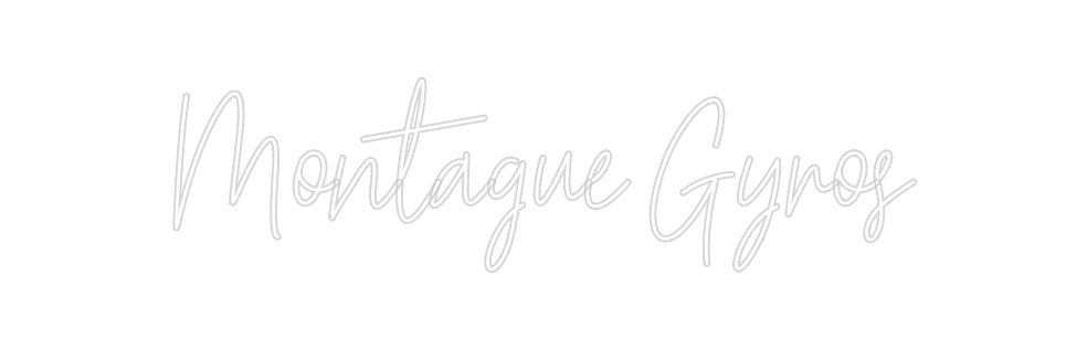 Text: Montague Gyros Text Align: center Font: HestericaColour: WhiteSize: 180cm wide / 180cm X 47.07cm / 70.87in X 18.53inBackboard: Cut to Letter (free upgrade)Jacket: Coloured JacketMounting: Wall mounting screwsAdd a Heart or Star (Optional): None (Default)Neon Tube Thicknes...