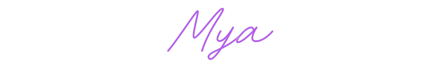 Text: Mya Text Align: leftFont: RocketColour: PurpleSize: 40cm wide / 40cm X 18.97cm / 15.75in X 7.47inBackboard: Cut to ShapeBackboard Colour: Clear Acrylic BackboardJacket: Coloured JacketMounting: Fast mount kitAdd a Heart or Star (Optional): None (Default)Neon Tube Thickness: Cla...