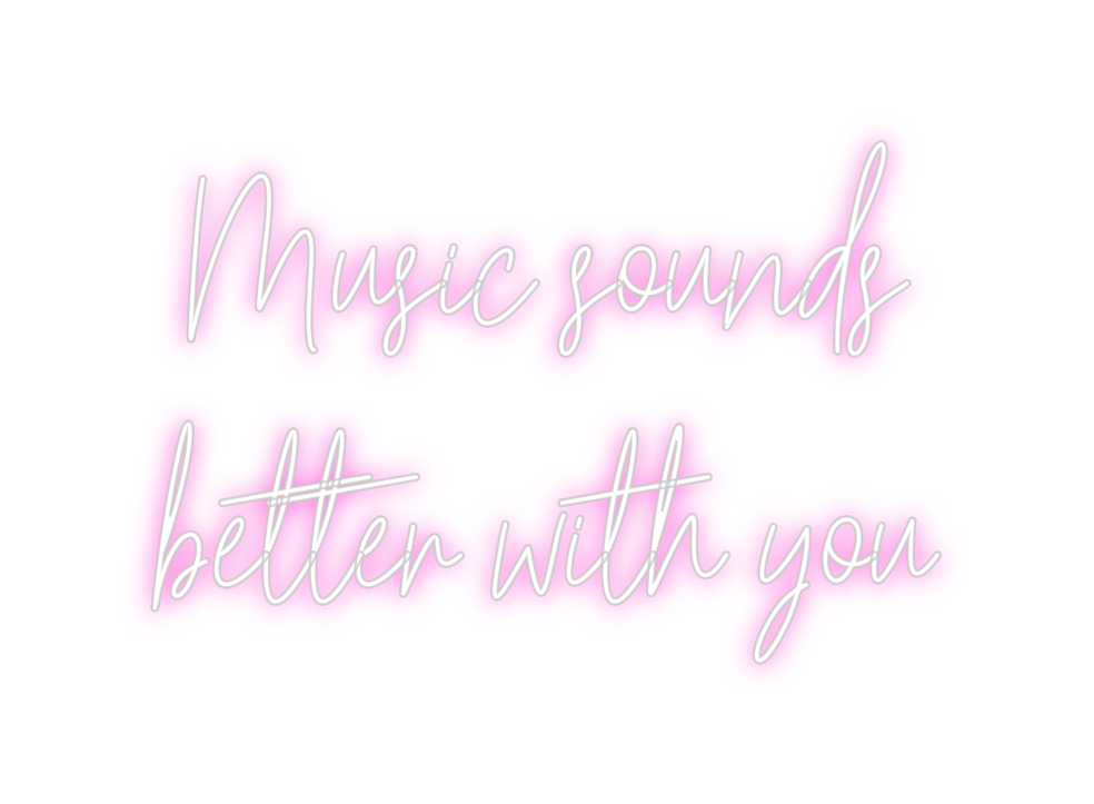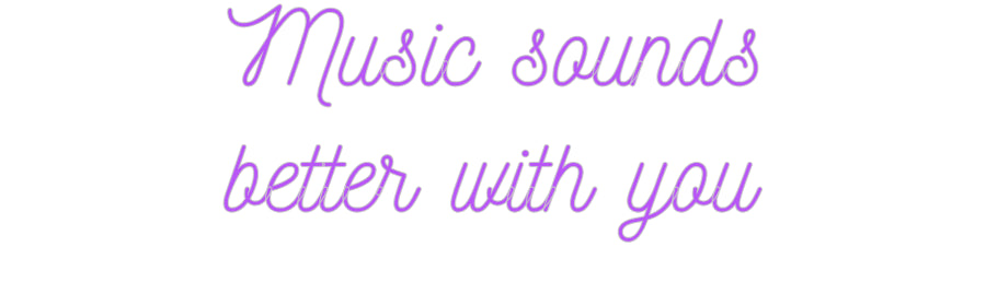 Text: Music sounds better with you Text Align: centerFont: NickainleyColour: PurpleSize: 80cm wide / 80cm X 36.65cm / 31.5in X 14.43inBackboard: Cut to Letter (free upgrade)Jacket: Coloured JacketMounting: Wall mounting screwsAdd a Heart or Star (Optional): None (Default)Neon Tube T...