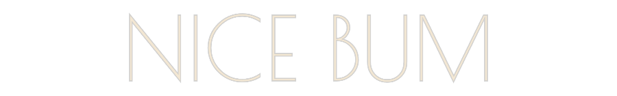Text: NICE BUM Text Align: LeftFont: PoiretColor: Warm WhiteSize: 60cm wide / 60cm X 12.36cm / 23.62in X 4.87inMaterial: Outdoor (+30%) Backboard: Whole Board (free upgrade)Backboard Color: Clear Acrylic BackboardJacket: Coloured JacketMounting: Wall mounting screwsAdd a Heart or Sta...