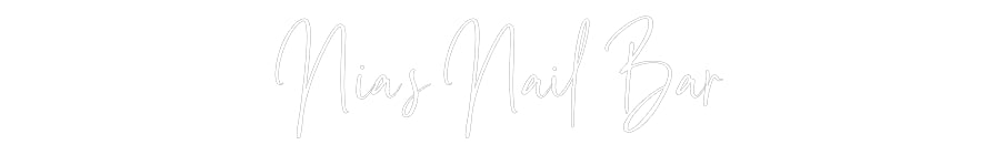 Text: Nia’s Nail Bar Text Align: left Font: OttawaColour: Warm WhiteSize: 80cm wide / 80cm X 22.64cm / 31.5in X 8.91inBackboard: Cut to ShapeBackboard Colour: Clear Acrylic BackboardJacket: Coloured JacketMounting: Wall mounting screwsAdd a Heart or Star (Optional): None (Defau...