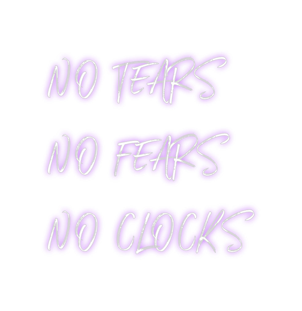 Text: NO TEARS NO FEARS NO CLOCKS Text Align: left Font: NorthwellColour: PurpleSize: 60cm wide / 60cm X 58.15cm / 23.62in X 22.89inBackboard: Cut to Letter (free upgrade)Jacket: White JacketMounting: Wall mounting screwsAdd a Heart or Star (Optional): None (Default)Neon Tube Thick...