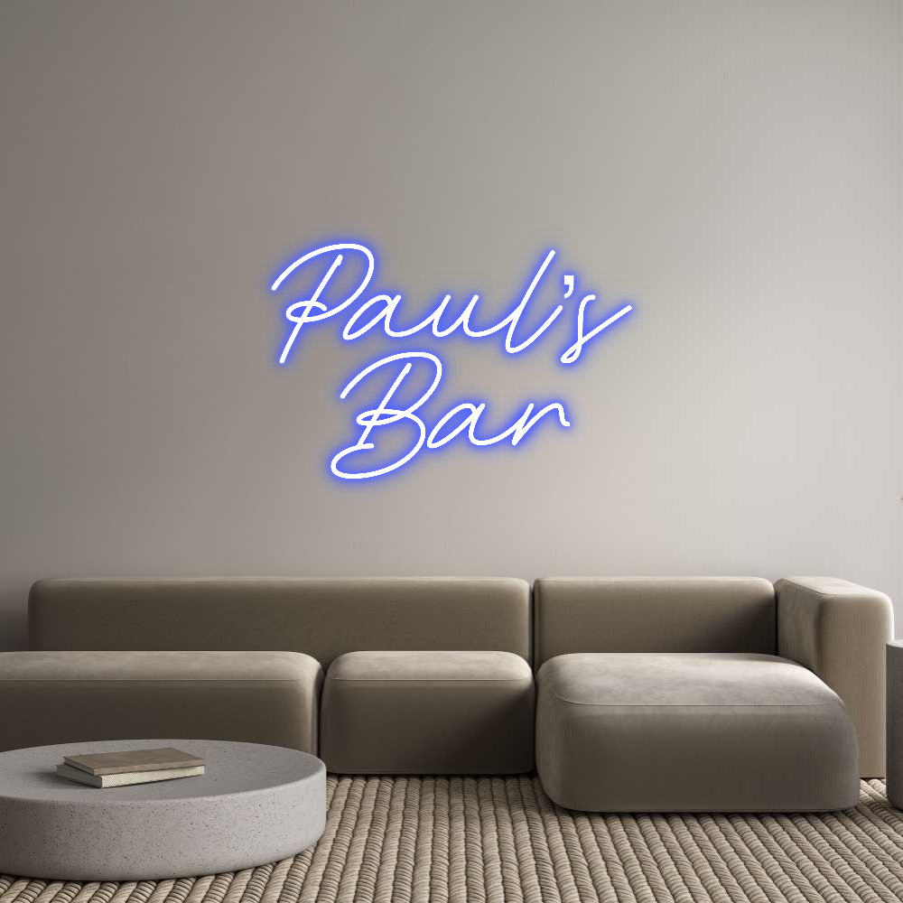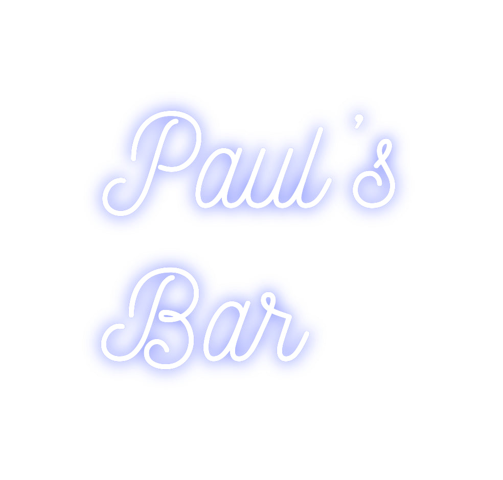 Text: Paul’s Bar Text Align: centerFont: RocketColour: BlueSize: 40cm wide / 40cm X 33.29cm / 15.75in X 13.11inBackboard: Cut to Letter (free upgrade)Jacket: White JacketMounting: HangingAdd a Heart or Star (Optional): None (Default)Neon Tube Thickness: Classic Tube (6mm)Remote Dimm...