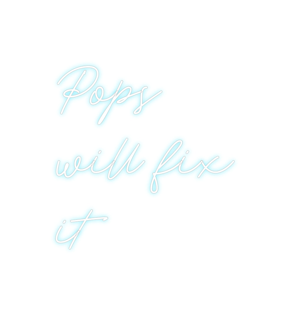Text: Pops will fix it Text Align: left Font: RocketColour: Ice BlueSize: 40cm wide / 40cm X 40.91cm / 15.75in X 16.11inBackboard: Whole Board (free upgrade)Backboard Colour: Clear Acrylic BackboardJacket: Coloured JacketMounting: Wall mounting screwsAdd a Heart or Star (Opti...