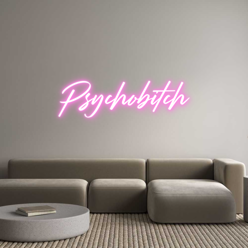 Text: Psychobitch Text Align: leftFont: StrudeColour: Baby PinkSize: 80cm wide / 80cm X 22.32cm / 31.5in X 8.79inBackboard: Whole Board (free upgrade)Backboard Colour: Clear Acrylic BackboardJacket: White JacketMounting: Wall mounting screwsAdd a Heart or Star (Optional): HeartNeon T...