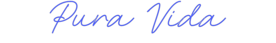 Text: Pura Vida Text Align: leftFont: RocketColour: BlueSize: 80cm wide / 80cm X 14.48cm / 31.5in X 5.7inBackboard: Cut to Letter (free upgrade)Jacket: Coloured JacketMounting: Wall mounting screwsAdd a Heart or Star (Optional): None (Default)Neon Tube Thickness: Classic Tube (6mm)Re...