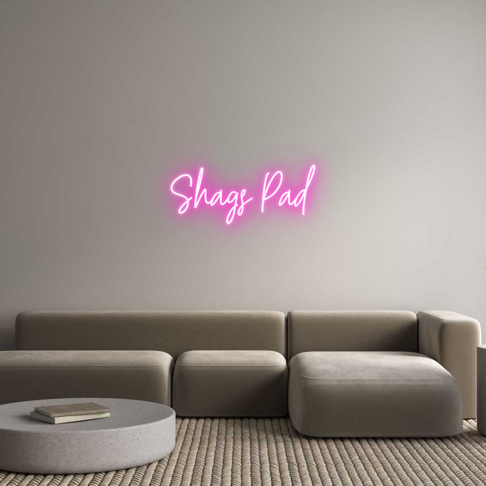 Text: Shags Pad Text Align: LeftFont: HestericaColor: PinkSize: 60cm wide / 60cm X 23.76cm / 23.62in X 9.36inBackboard: Cut to ShapeBackboard Color: Clear Acrylic BackboardJacket: Coloured JacketMounting: Wall mounting screwsAdd a Heart or Star (Optional): HeartNeon Tube Thickness: C...