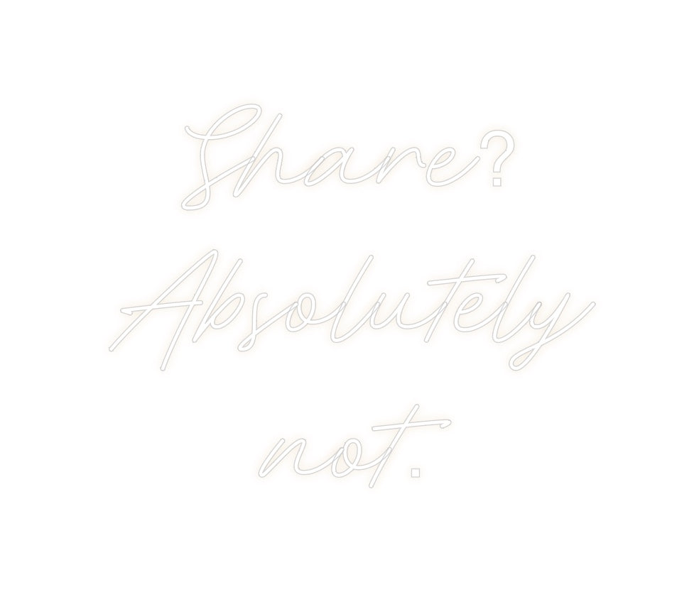 Text: Share? Absolutely not. Text Align: center Font: RocketColour: Warm WhiteSize: 80cm wide / 80cm X 62.97cm / 31.5in X 24.79inBackboard: Cut to ShapeBackboard Colour: Clear Acrylic BackboardJacket: Coloured JacketMounting: Wall mounting screwsAdd a Heart or Star (Optional): None...
