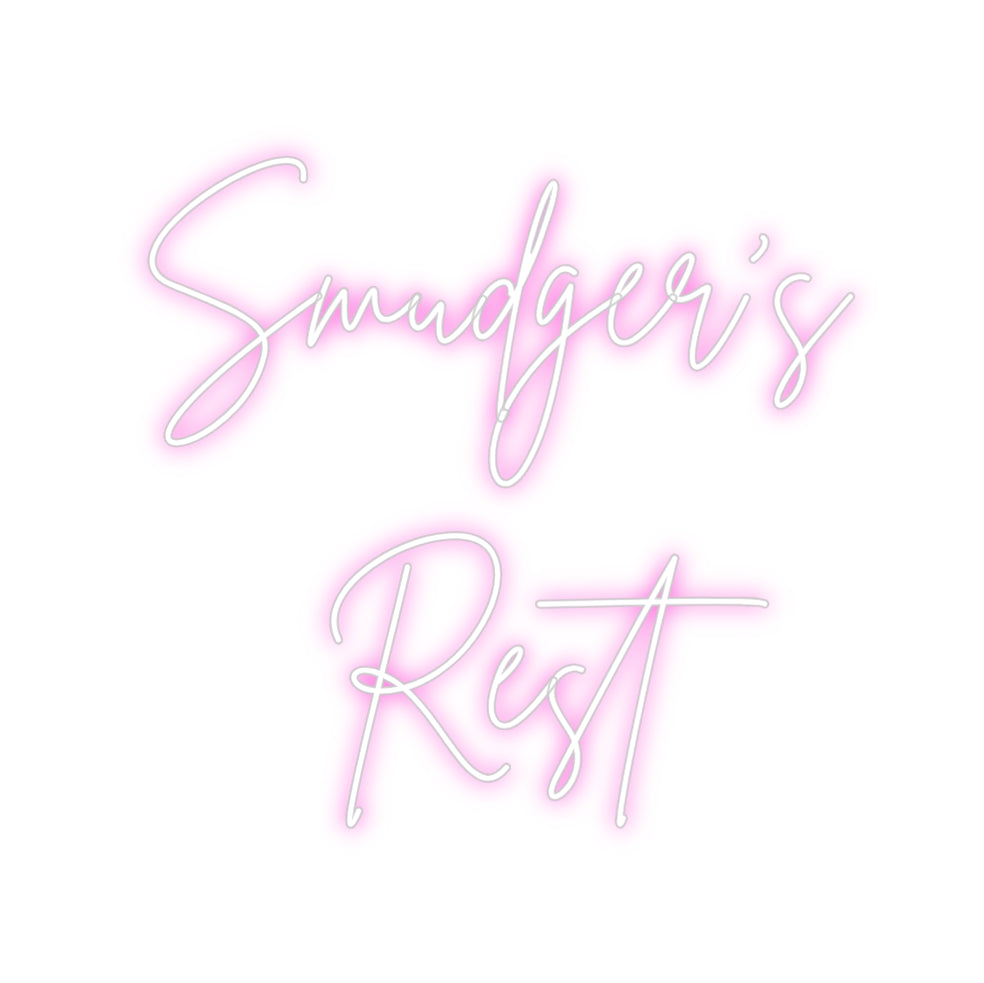 Text: Smudger's Rest Text Align: center Font: BrittanyColour: PinkSize: 80cm wide / 80cm X 75.05cm / 31.5in X 29.55inBackboard: Cut to Letter (free upgrade)Jacket: Coloured JacketMounting: Wall mounting screwsAdd a Heart or Star (Optional): None (Default)Neon Tube Thickness: B...