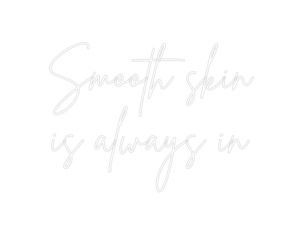 Text: Smooth skin is always in Text Align: center Font: BrittanyColour: WhiteSize: 60cm wide / 60cm X 43.59cm / 23.62in X 17.16inBackboard: Cut to Letter (free upgrade)Jacket: Coloured JacketMounting: Wall mounting screwsAdd a Heart or Star (Optional): None (Default)Neon Tube ...