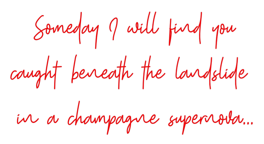 Text: Someday I will find you caught beneath the landslide in a champagne supernova... Text Align: CenterFont: ShutterColor: RedSize: 160cm wide / 160cm X 75.9cm / 62.99in X 29.88inMaterial: IndoorBackboard: Cut to ShapeBackboard Color: Clear Acrylic BackboardJacket: Coloured JacketMou...