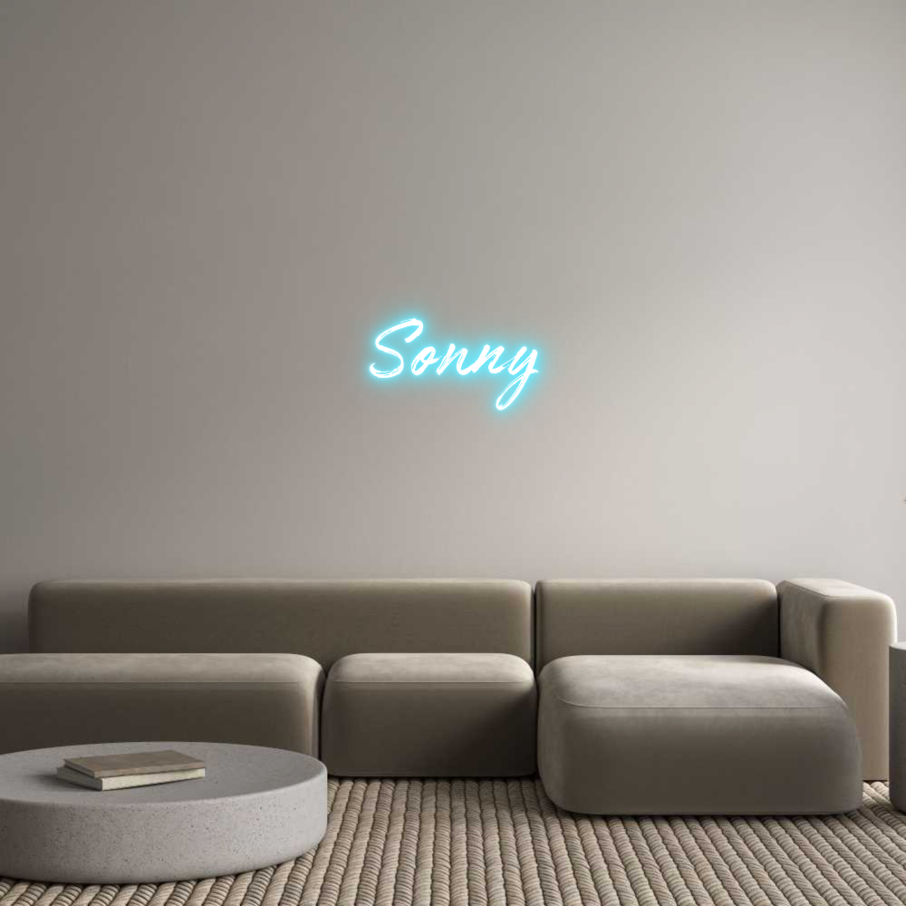 Text: Sonny Text Align: leftFont: WorldColour: Ice BlueSize: 80cm wide / 80cm X 42.74cm / 31.5in X 16.82inBackboard: Cut to ShapeBackboard Colour: Clear Acrylic BackboardJacket: White JacketMounting: Wall mounting screwsAdd a Heart or Star (Optional): None (Default)Neon Tube Thicknes...