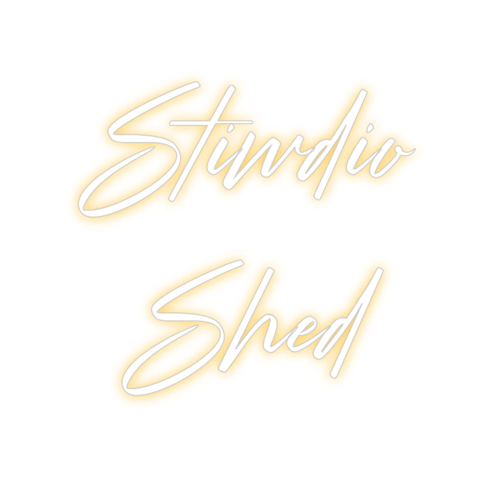 Text: Stiwdio Shed Text Align: center Font: StrudeColour: Light OrangeSize: 40cm wide / 40cm X 36.55cm / 15.75in X 14.39inBackboard: Cut to ShapeBackboard Colour: Clear Acrylic BackboardJacket: Coloured JacketMounting: Wall mounting screwsAdd a Heart or Star (Optional): None (...