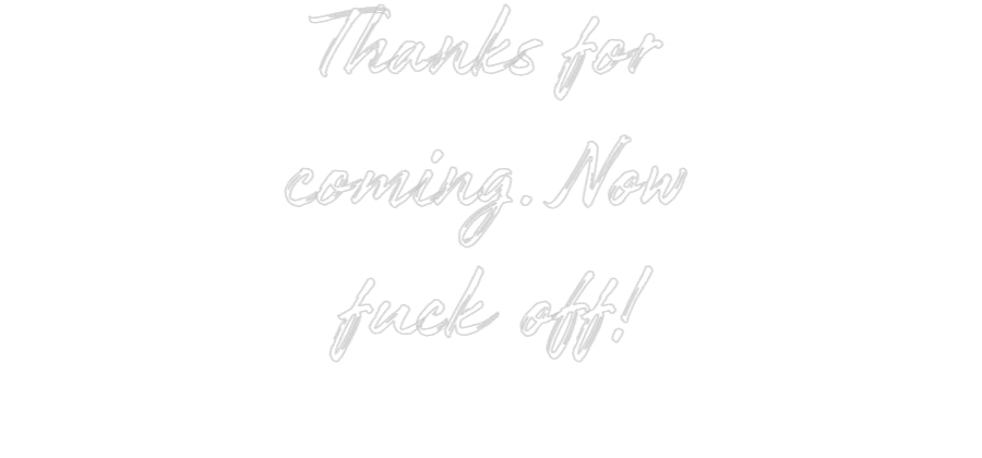 Text: Thanks for coming. Now fuck off! Text Align: centerFont: WorldColour: PurpleSize: 60cm wide / 60cm X 52.48cm / 23.62in X 20.66inBackboard: Cut to Letter (free upgrade)Jacket: White JacketMounting: Wall mounting screwsAdd a Heart or Star (Optional): None (Default)Neon Tube Thi...