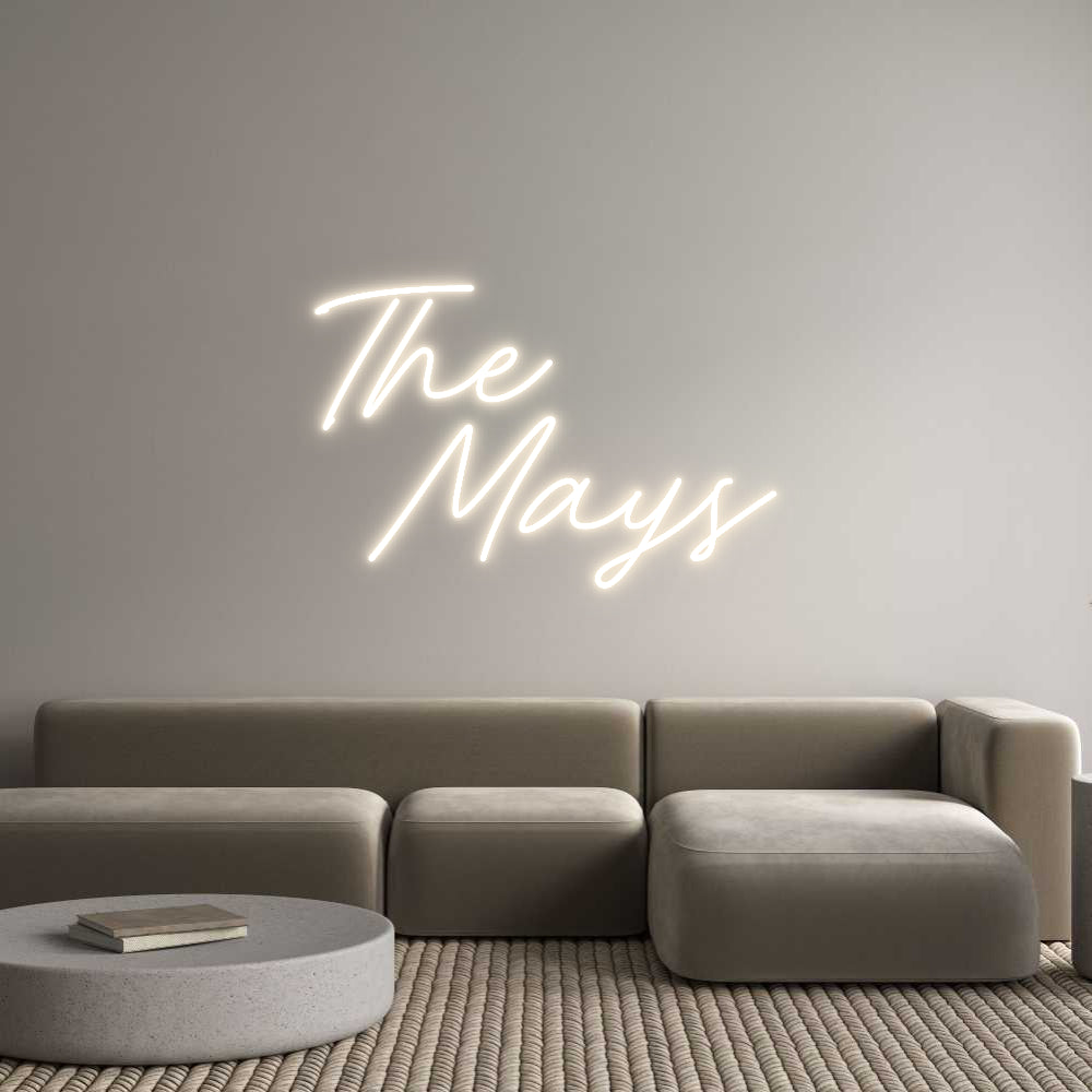 Text: The Mays Text Align: leftFont: RocketColour: Warm WhiteSize: 100cm wide / 100cm X 83.16cm / 39.37in X 32.74inBackboard: Cut to ShapeBackboard Colour: Clear Acrylic BackboardJacket: Coloured JacketMounting: Wall mounting screwsAdd a Heart or Star (Optional): None (Default)Neo...