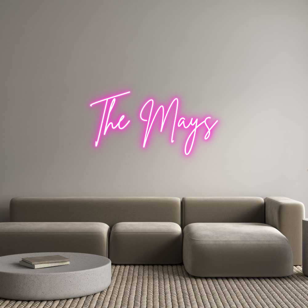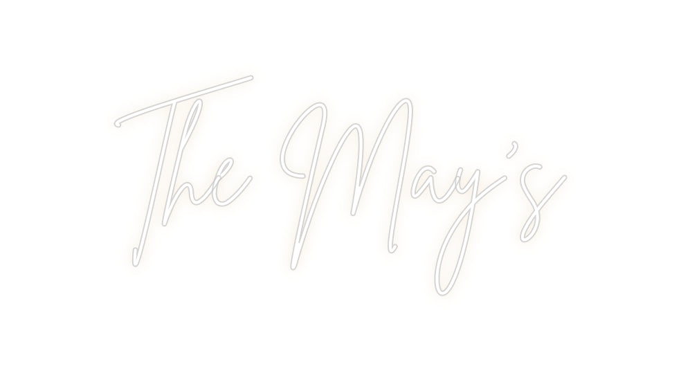 Text: The May’s Text Align: left Font: BrittanyColour: Warm WhiteSize: 60cm wide / 60cm X 29.05cm / 23.62in X 11.44inBackboard: Cut to ShapeBackboard Colour: Clear Acrylic BackboardJacket: Coloured JacketMounting: HangingAdd a Heart or Star (Optional): None (Default)Neon Tube ...