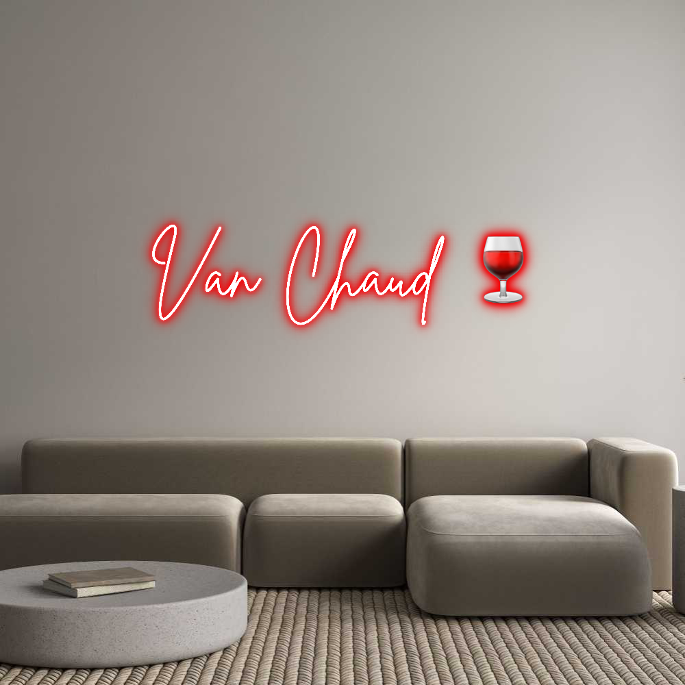 Text: Van Chaud 🍷 Text Align: leftFont: BrittanyColour: RedSize: 80cm wide / 80cm X 22.19cm / 31.5in X 8.73inBackboard: Cut to ShapeBackboard Colour: Clear Acrylic BackboardJacket: Coloured JacketMounting: Wall mounting screwsAdd a Heart or Star (Optional): None (Default)Neon Tube Th...