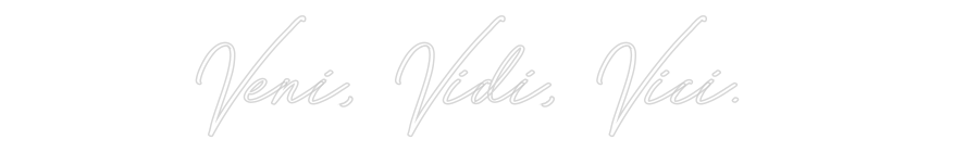 Text: Veni, Vidi, Vici. Text Align: leftFont: BayshoreColour: Warm WhiteSize: 100cm wide / 100cm X 21.11cm / 39.37in X 8.31inBackboard: Cut to Letter (free upgrade)Jacket: White JacketMounting: Fast mount kitAdd a Heart or Star (Optional): None (Default)Neon Tube Thickness: Classic ...