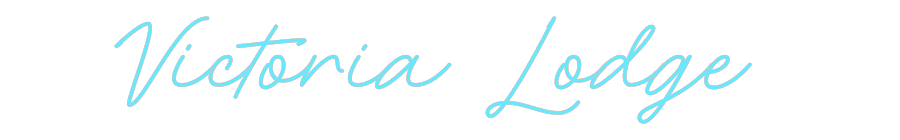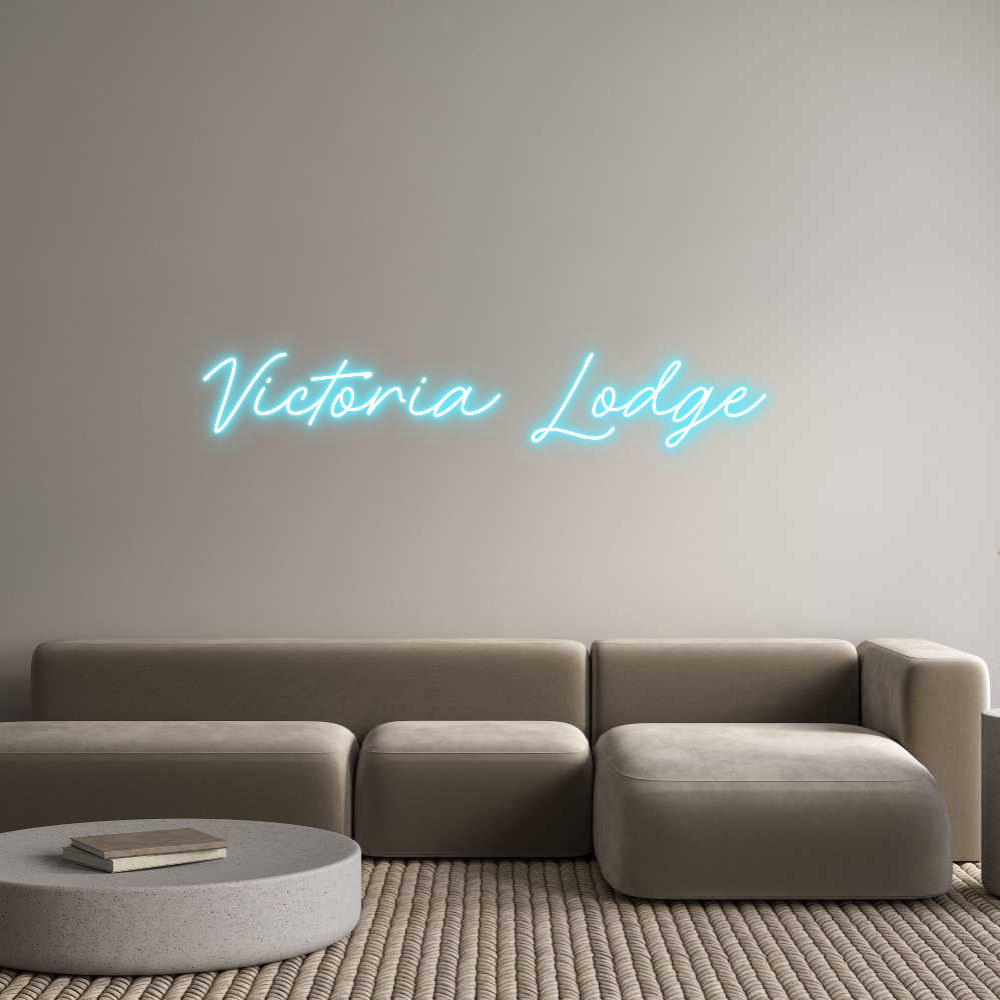Text: Victoria Lodge Text Align: LeftFont: RocketColor: Ice BlueSize: 80cm wide / 80cm X 13.5cm / 31.5in X 5.31inMaterial: IndoorBackboard: Cut to Letter (free upgrade)Jacket: Coloured JacketMounting: Wall mounting screwsAdd a Heart or Star (Optional): None (Default)Neon Tube Thickn...