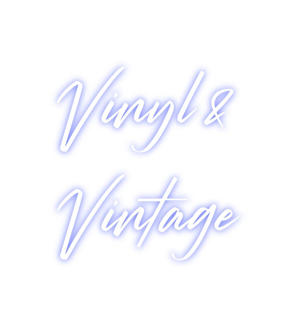 Text: Vinyl & Vintage Text Align: left Font: StrudeColour: BlueSize: 40cm wide / 40cm X 41.54cm / 15.75in X 16.36inBackboard: Cut to ShapeBackboard Colour: Clear Acrylic BackboardJacket: Coloured JacketMounting: HangingAdd a Heart or Star (Optional): None (Default)Neon Tub...