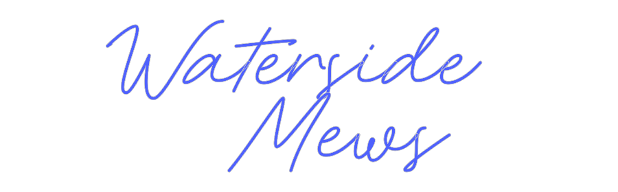 Text: Waterside Mews Text Align: CenterFont: RocketColor: BlueSize: 80cm wide / 80cm X 41.29cm / 31.5in X 16.26inMaterial: IndoorBackboard: Cut to ShapeBackboard Color: Clear Acrylic BackboardJacket: Coloured JacketMounting: Wall mounting screwsAdd a Heart or Star (Optional): Non...